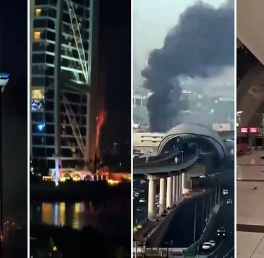 On 1 March 2026 Iran targeted oil facilities and US bases in Bahrain, Qatar, and the UAE . Debris from intercepted drones caused a fire at the Burj Al Arab hotel in Dubai, and an Asian national was killed at Abu Dhabi airport.